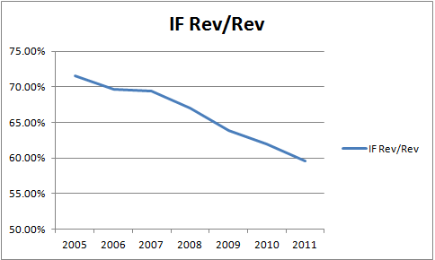 以上5間奶粉生產商,Inventory Turnover於近期的數值,都沒明顯比其他時期低,當然這是指整間公司所有業務而言,各自嬰兒產品的Inventory turnover未知有否於年報提及,要再研究,但相信不會有過大的差距。另外如果觀察各大廠的Income statement,例如MJN,由2005至2011財政年度,嬰兒食品(Infant formula)佔營業額比重由2005的71.6%,一直回落至2011年的59.52%。